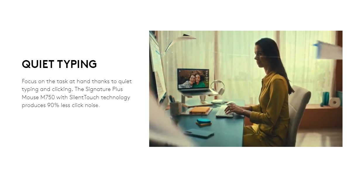 - Click noise reduced by over 90% compared to Logitech M185. Left click and typing dBA level measured by an independent lab at 1 meter