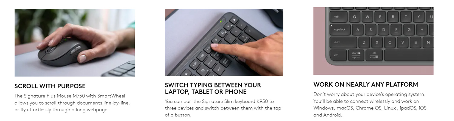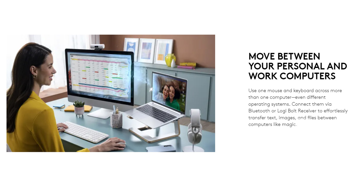 A keyboard and mouse set that keeps you productive as you switch between your work and personal computers. A keyboard and mouse combo designed for blended lives that juggle both work and life. Itโll feel like magic as you switch between work and personal computers, customize your shortcuts, and enjoy quiet typing and clicking.