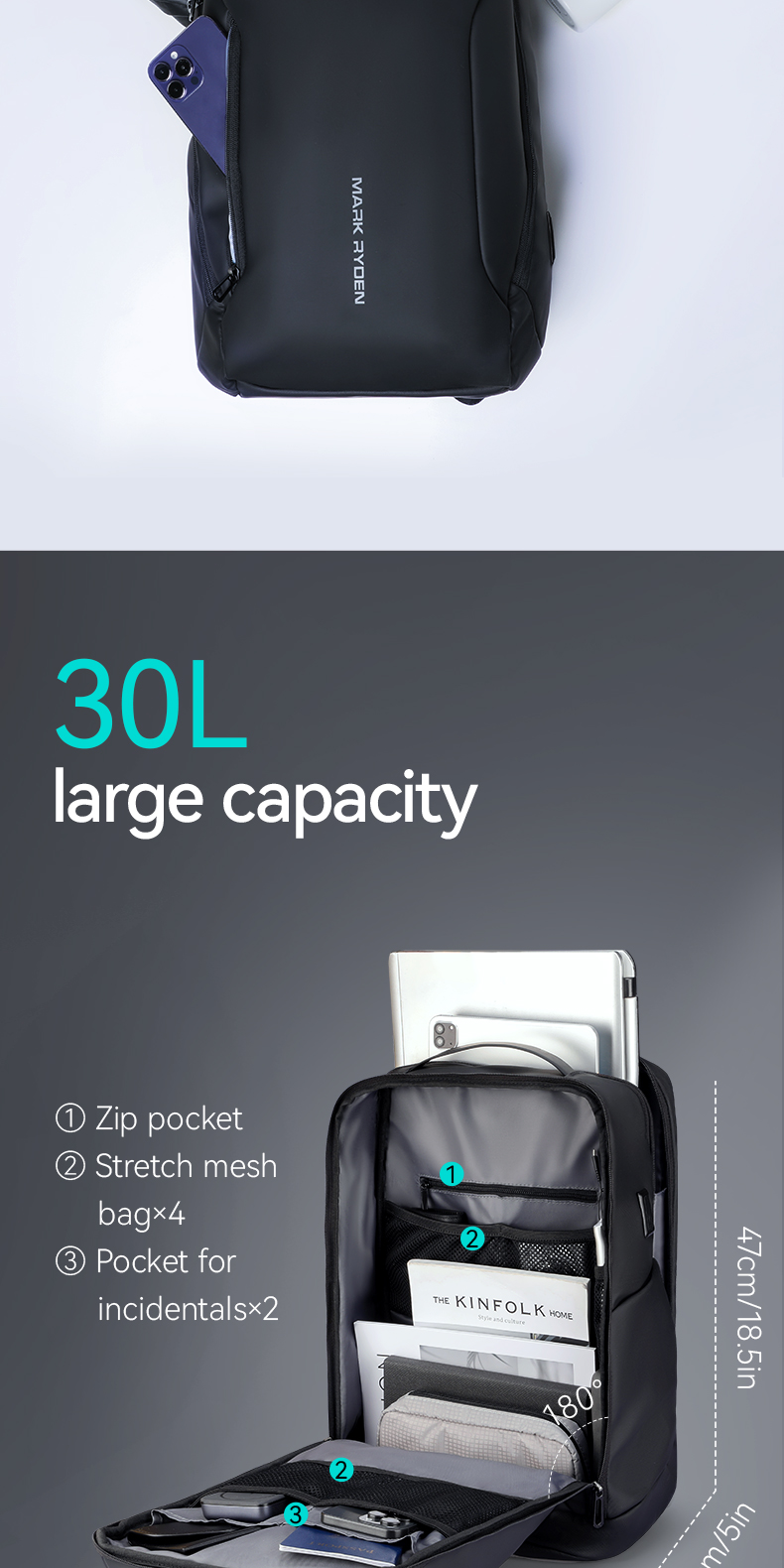 One spacious main compartment fits books, light clothes or travel supplies. Besides, the travel backpack owns a lot of independent pockets for large storage and organization for small items, hidden zipper pockets for additional anti-theft protection on the back of the backpack.