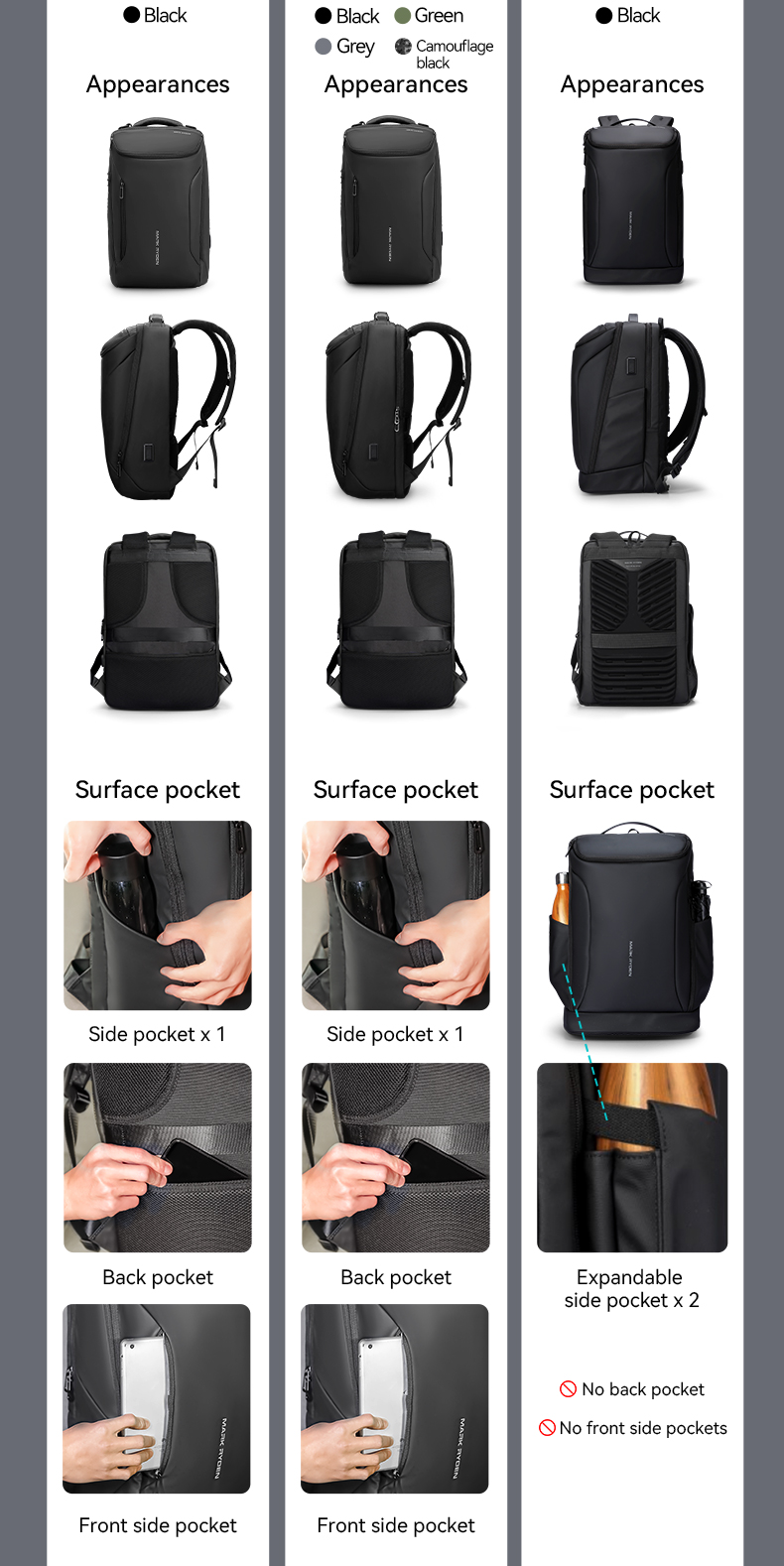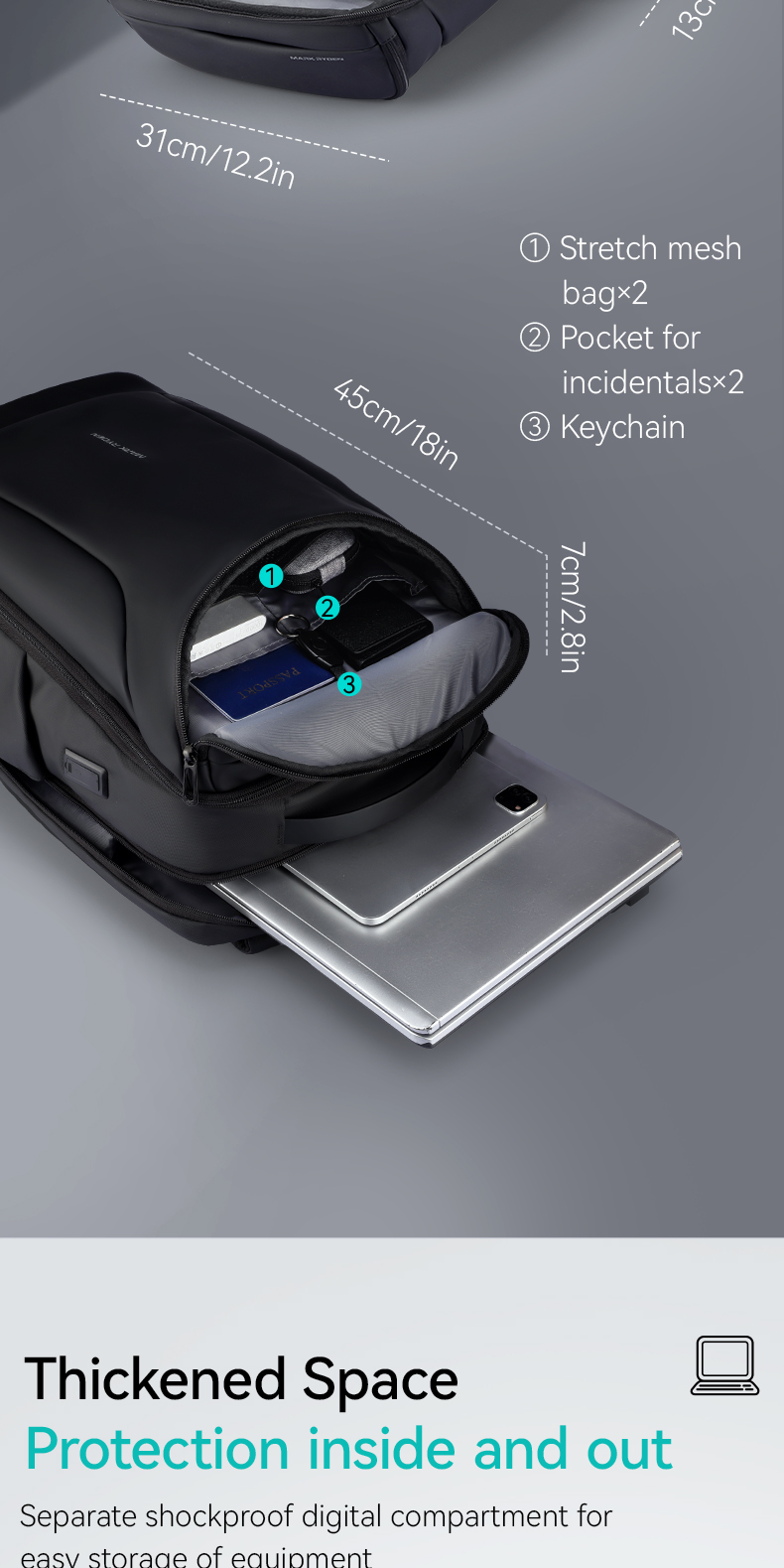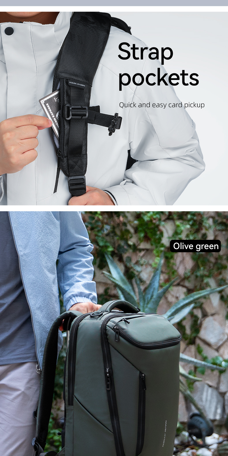 ▶ Comfy and Breathable: Tech backpack with back U shaped three-dimensional ventilation design helps with air convection, ventilation and heat elimination. Wide breathable mesh shoulder straps with plentiful sponge pads help relieve the stress from your shoulder. Both sides of the shoulder strap with lanyard design can hang sunglasses and other small pendants. At the same time, the luggage strap on the back can help secure the backpack to the suitcase, which will make your journey easier.