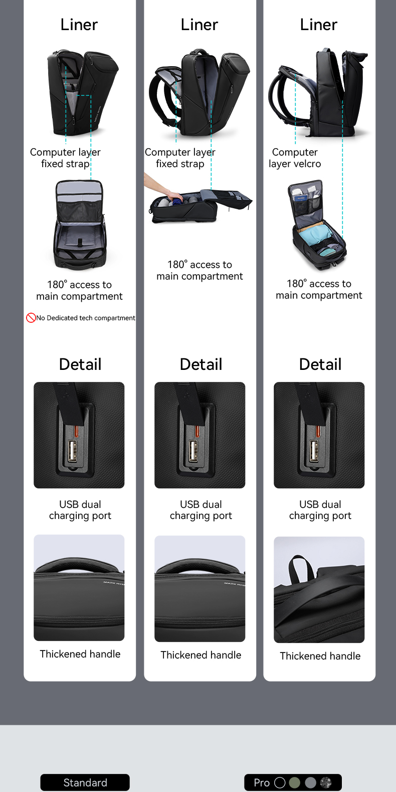 Pro Model: 3 main pocket 47 x 33 x 20 cm