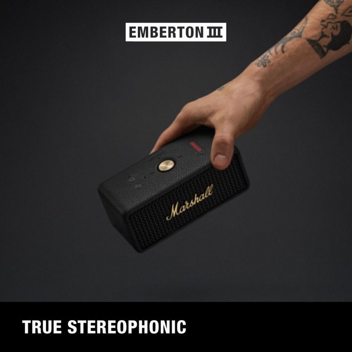 Featuring an IP67 dust and waterproof rating, you can submerge Emberton III in 1 m (3 ft) of water for up to 30 minutes. Marshall's on the road spirit lives on in this rugged speaker design.