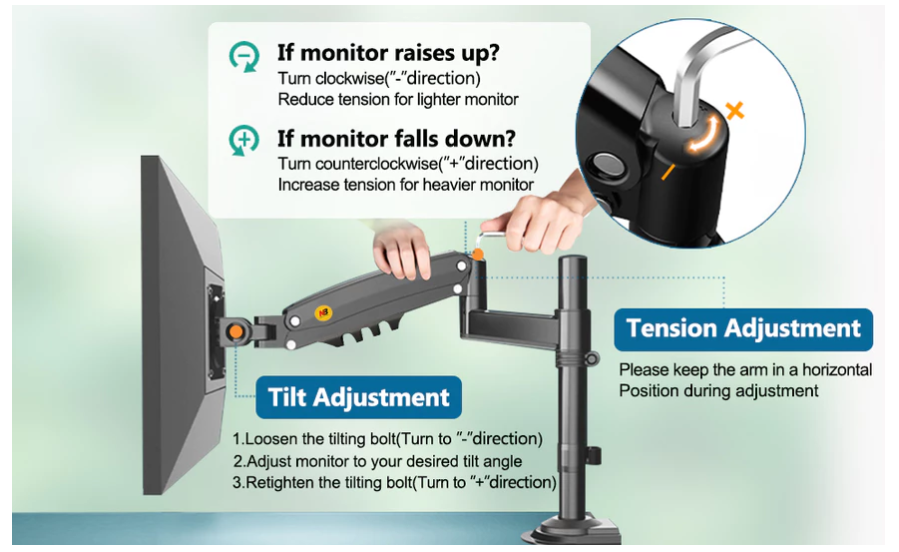 - Full motions flexibility with all directional effortless adjustment without tools used