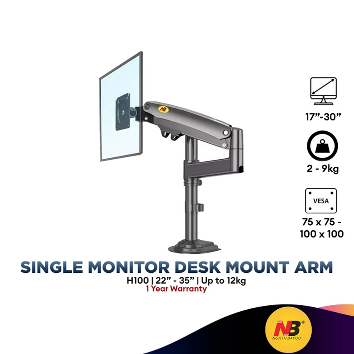 NB North Bayou H100 17-30 Inch Gas Strut Single Arm Monitor Desk Mount