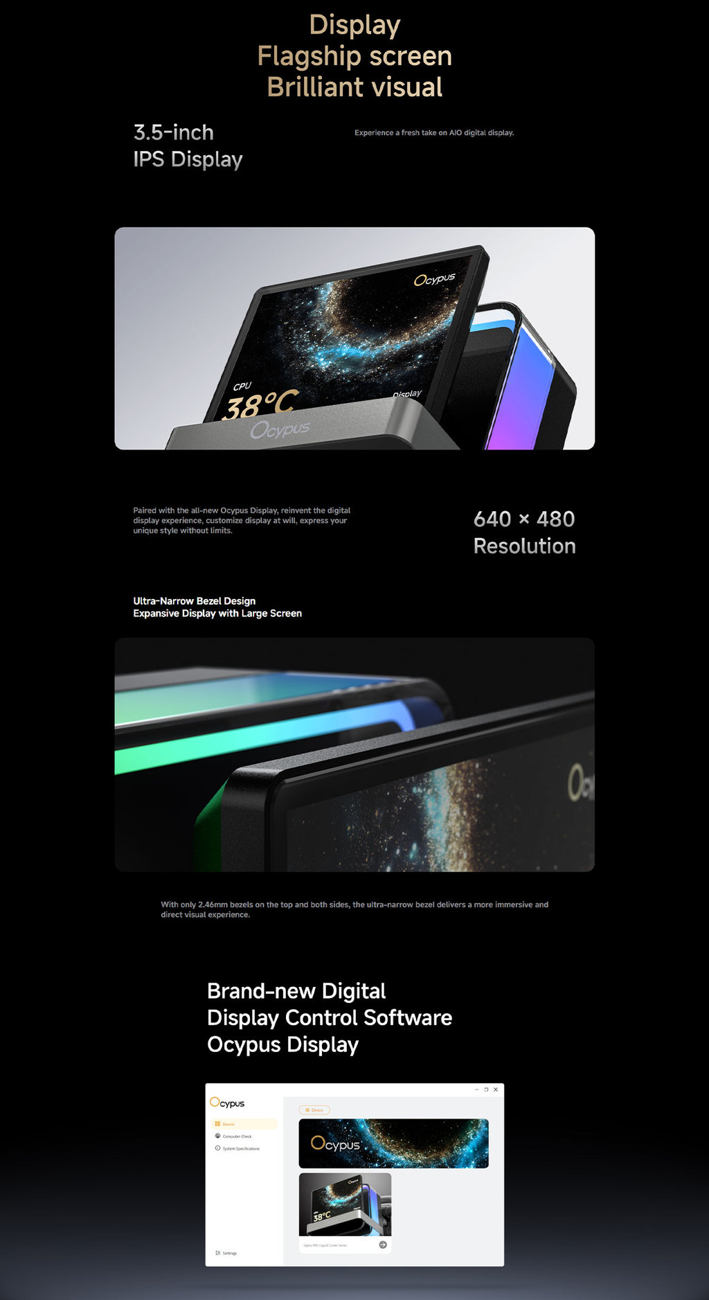 Ocypus Sigma L24 PRO 240mm ARGB AIO Liquid Cooler with 3.5 IPS Display Screen (Black/White) cpu cooler