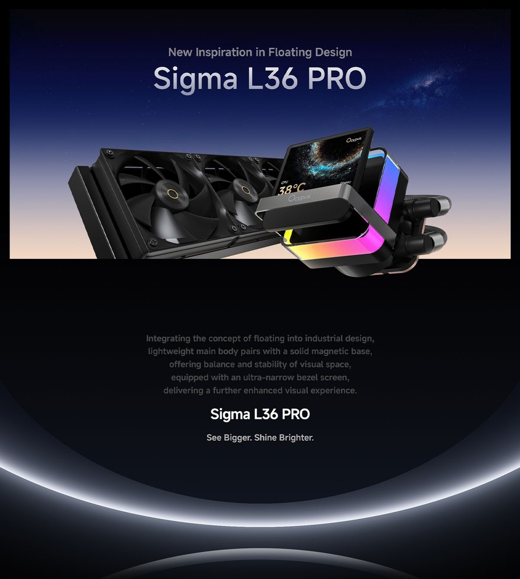 Ocypus Sigma L36 PRO 360mm ARGB AIO Liquid Cooler with 3.5 IPS Display Screen (Black/White) cpu cooler