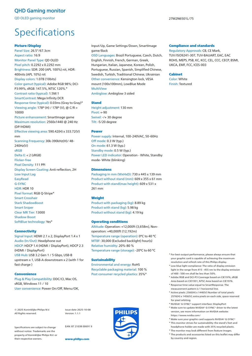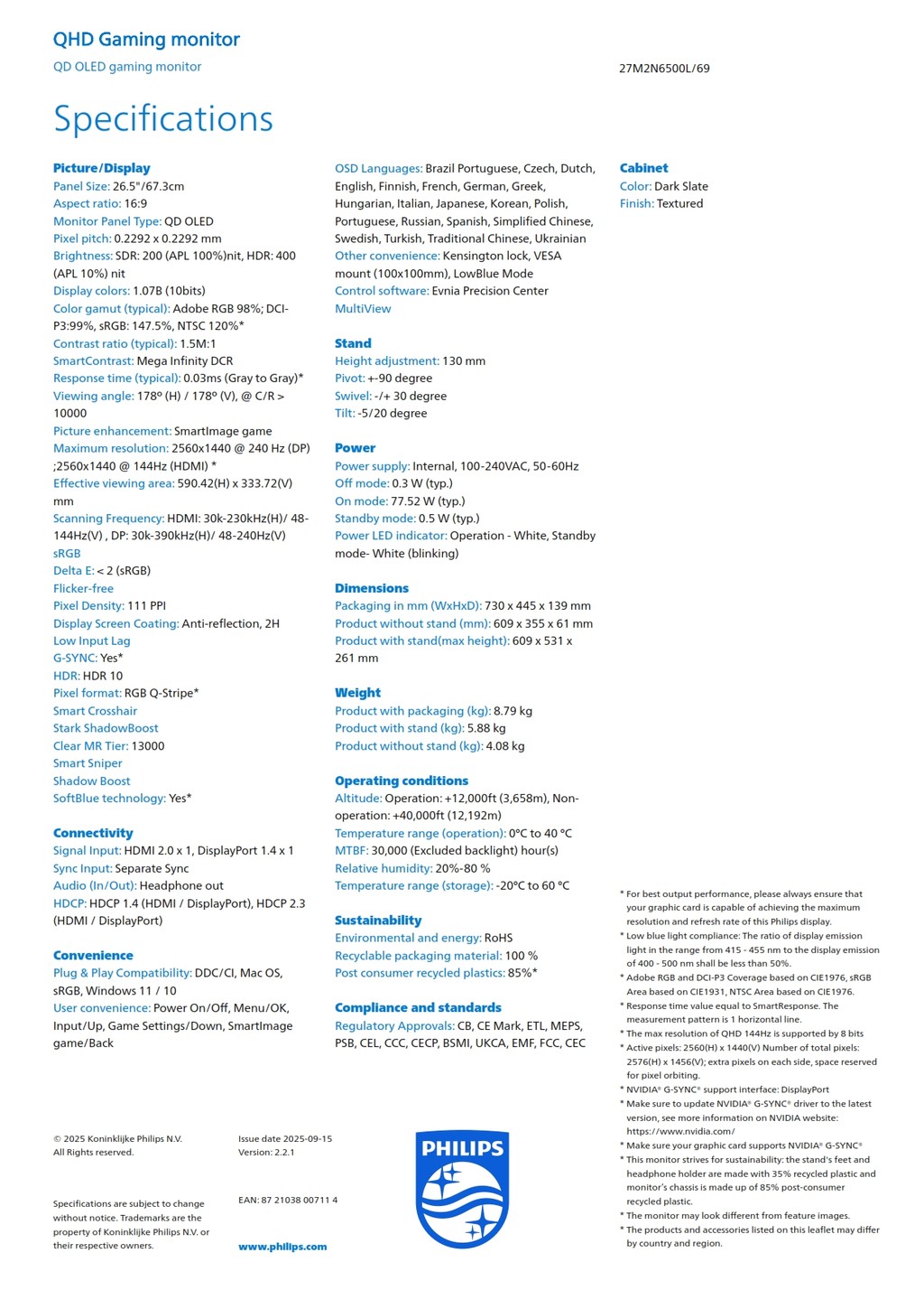 Brightness: SDR: SDR: 200 (APL 100%) nit, HDR: 400nits (APL 10%) nit