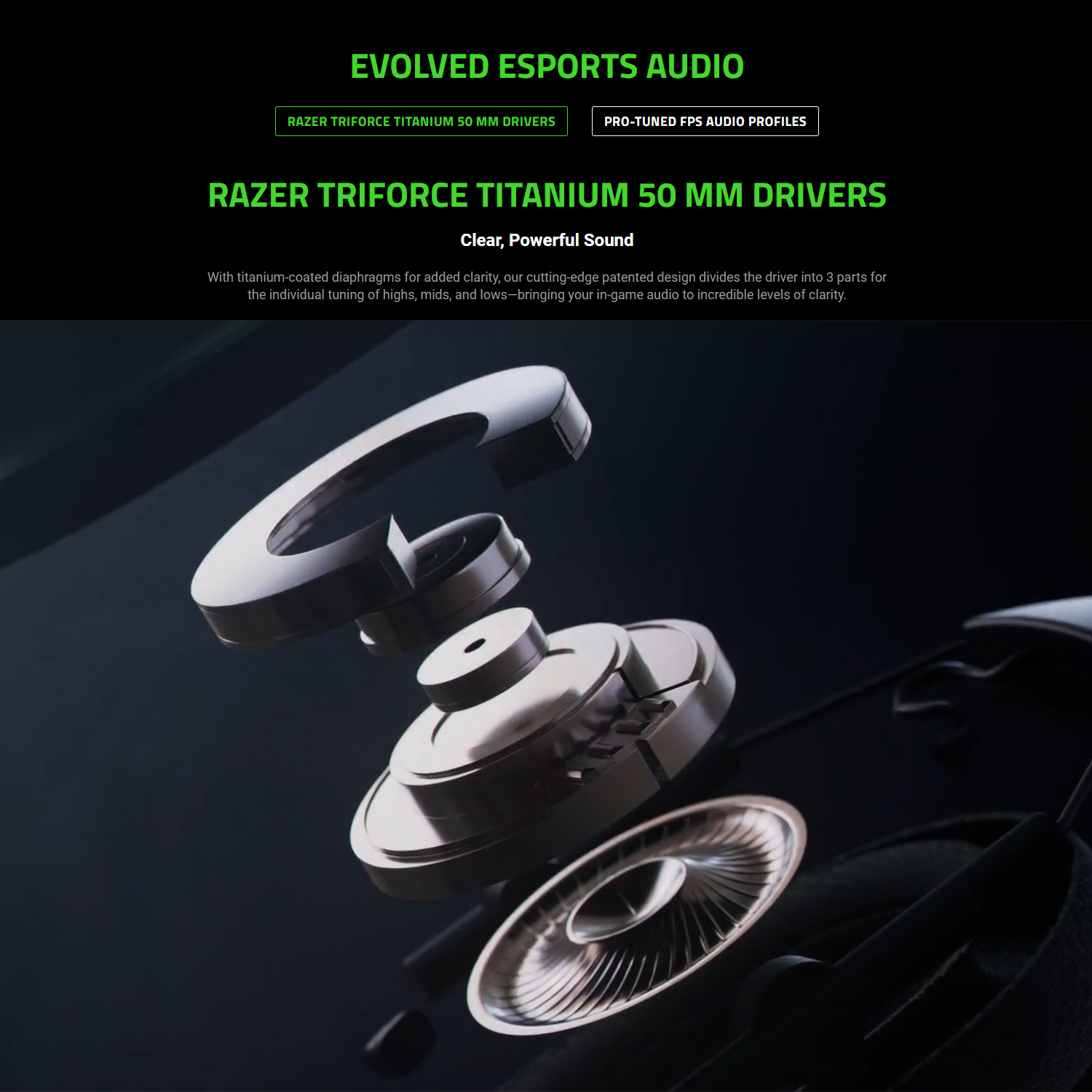 Razerโ„ข TriForce Titanium 50 mm Drivers