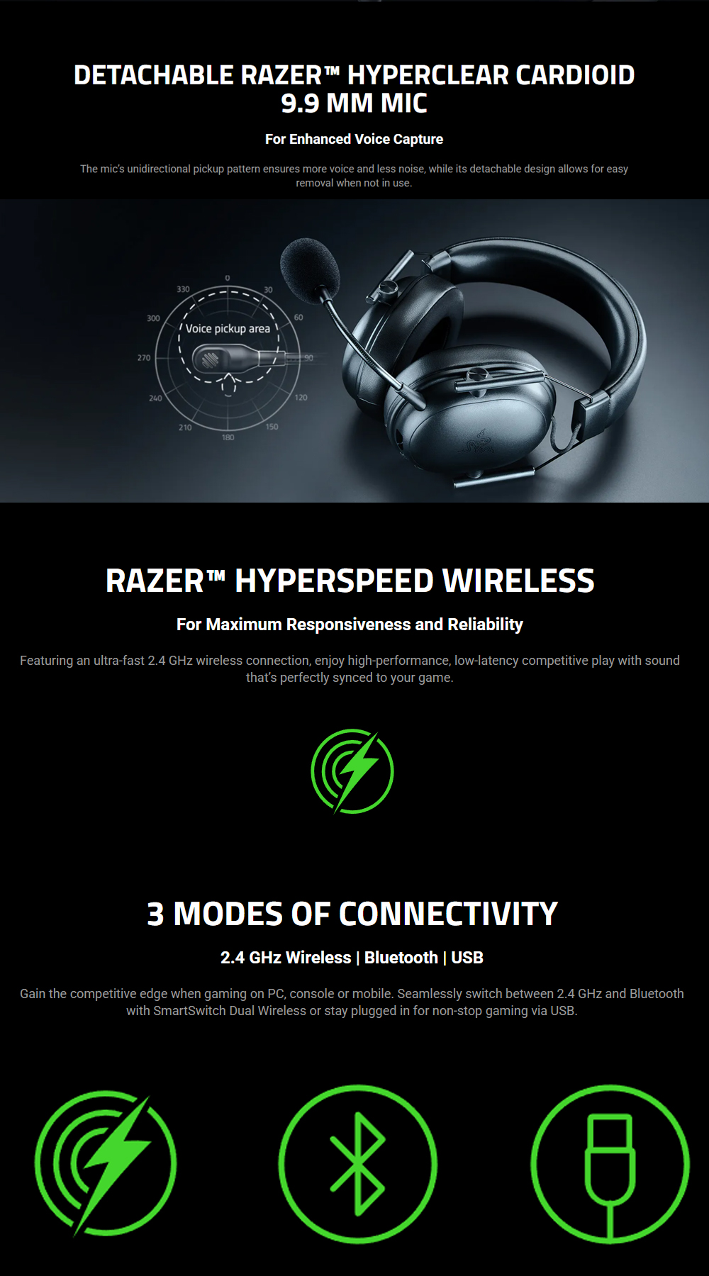 Microphone Style: Detachable Razer HyperClear Cardioid 9.9 mm Mic
