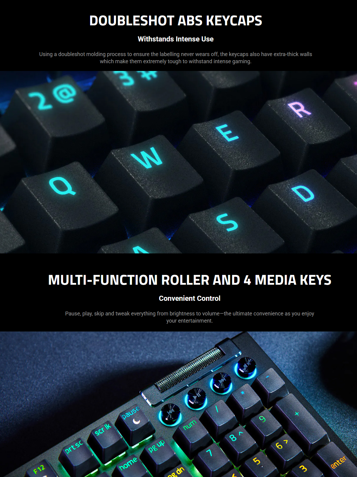Media Keys: Dedicated media roller with 4 dedicated media buttons