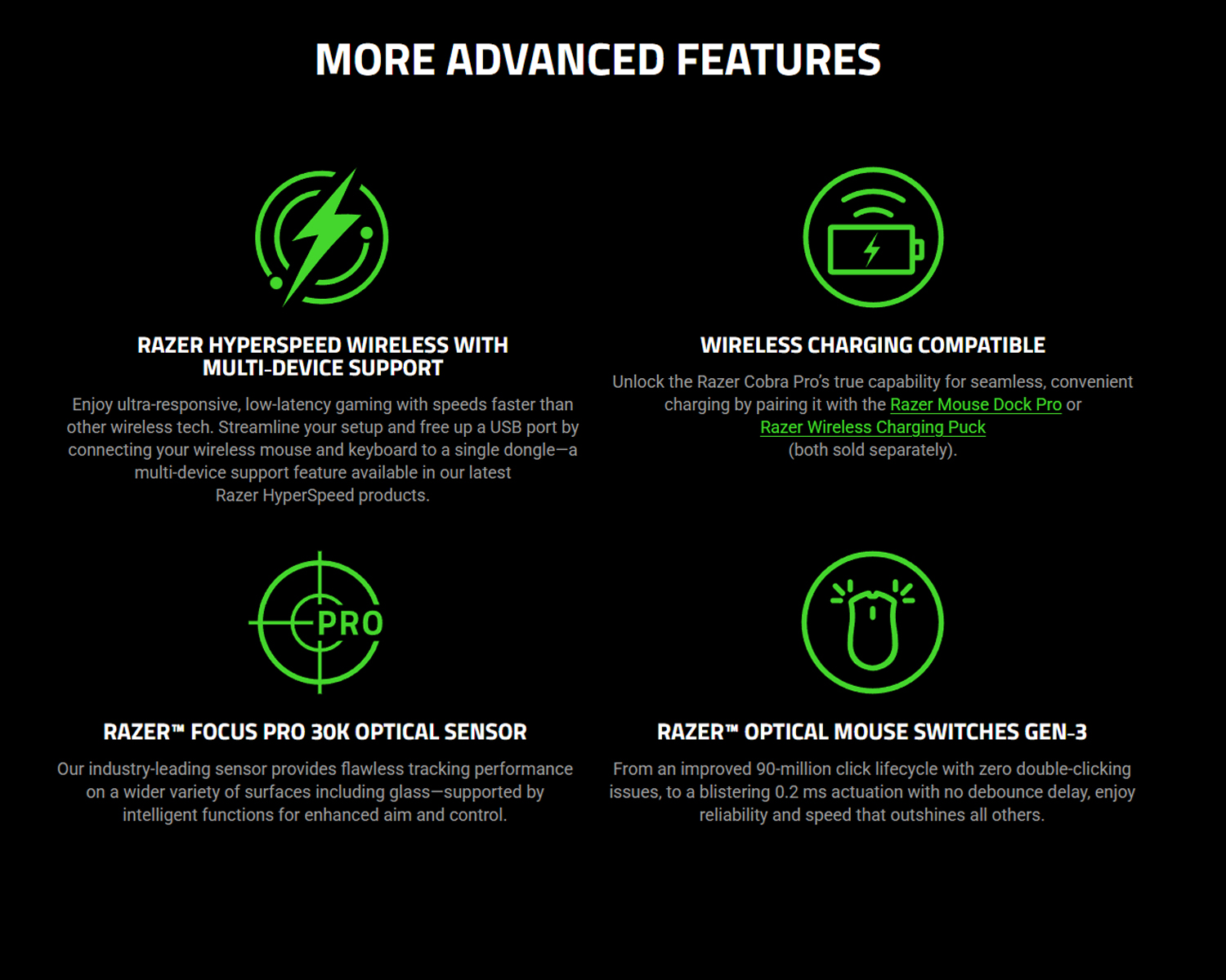 Dock compatibility: Razer Mouse Dock Pro with Razer Wireless Charging Puck (both sold separately)