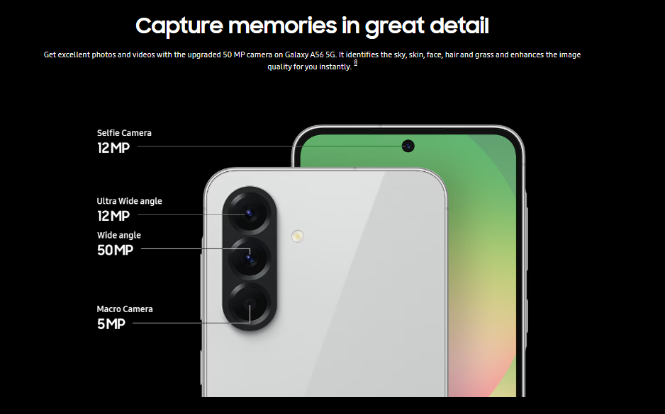 - Rear Camera - Resolution (Multiple) : 50.0 MP + 12.0 MP + 5.0 MP