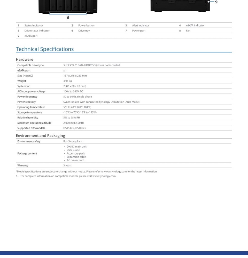 Easily add 5 additional drive bays to Synology DiskStation1. Supporting both 2.5" and 3.5" SATA drives, DX517 is a flexible solution supporting on-the-fly volume expansion or serving as a local backup destination.