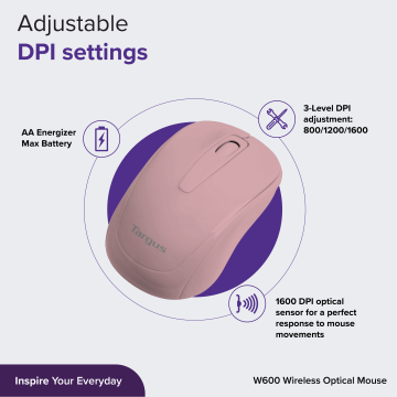 Targus W600 Wireless / Cordless Optical Mouse Compatible - Windows® & Mac® | 2.4 Ghz Wireless Technology | AA Alkaline Battery (AMW600)