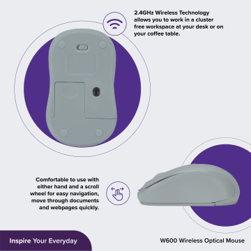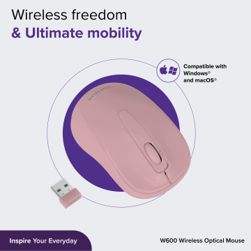 Go wireless with the ergonomically styled Targus W600 Optical Mouse. Its 1,600 DPI optical sensor provides a precise response to mouse movements and its 2.4 GHz wireless technology reduces interference, delays, and signal drops for excellent tracking. Just keep the small receiver plugged into your computer’s USB port or tuck it away into the convenient storage compartment inside the mouse for those of you always on the go. This mouse is comfortable to use, complete with technology that’s convenient and highly functional.