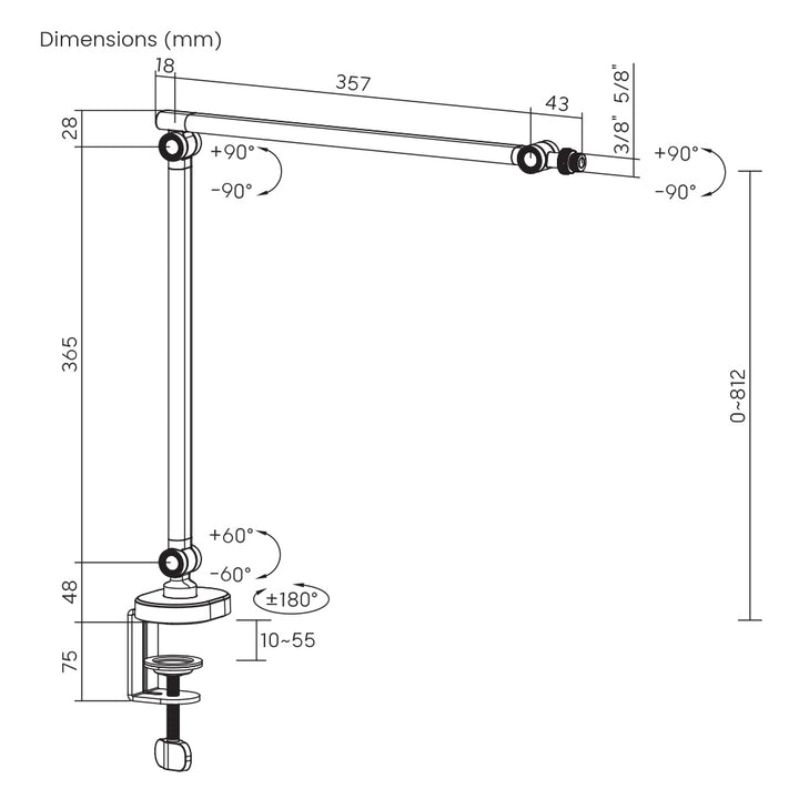 Boom Arm Length: 722mm (28.4" )