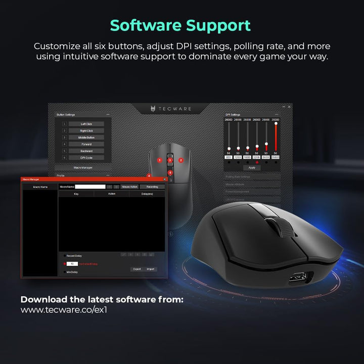PixArt PAW3395 Sensor, Up to 26000 DPI Resolution