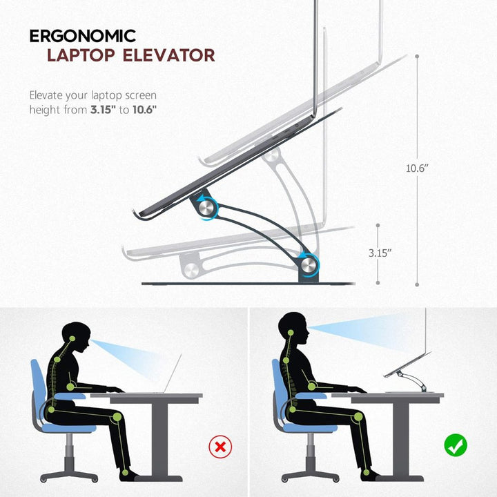 Height & Angle Adjustable: This laptop stand for desk offers a height range of 3.15" to 10.6", also the angle is adjustable, so you can easy to get a comfortable angle and height.