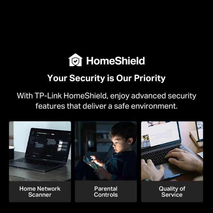 • TP-Link HomeShield: Enhanced security defends against the latest cyber threats.**
