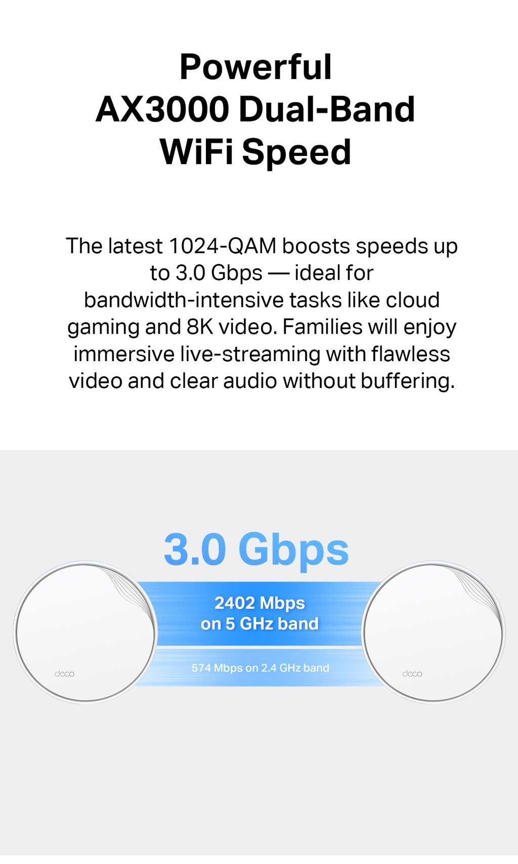 ◾Seamless AI-Driven Mesh – Intelligently learns your network environment to provide the ideal WiFi unique to your home.‡