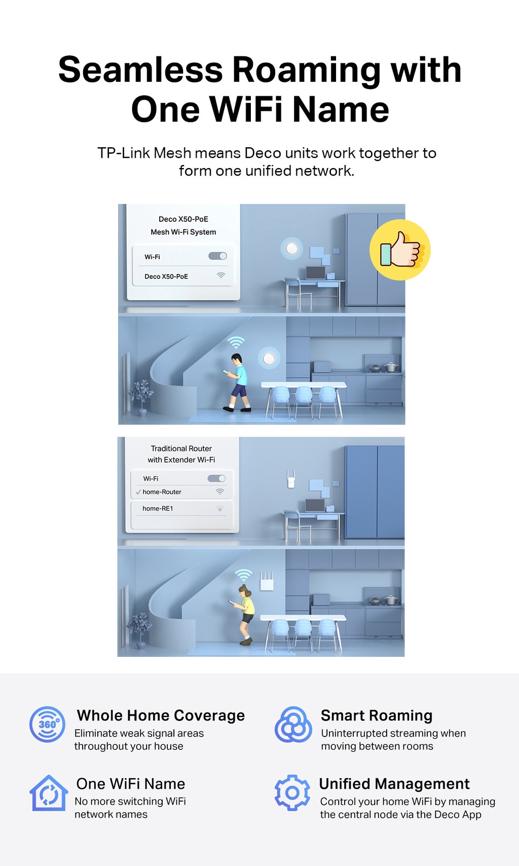 TP-Link Deco X50-POE AX3000 WiFi 6 Whole Home Wireless AI-Driven Mesh Router