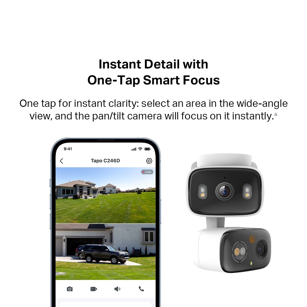 - One-Tap Smart Focus - Select an area in the wide-angle view, and the pan/tilt camera will focus on it instantly.