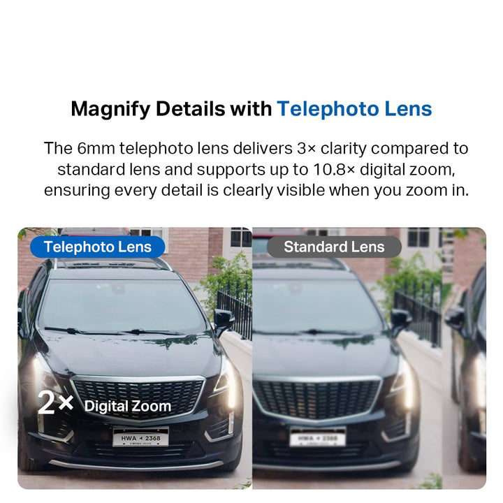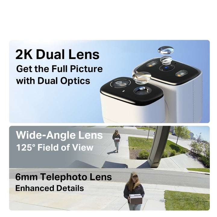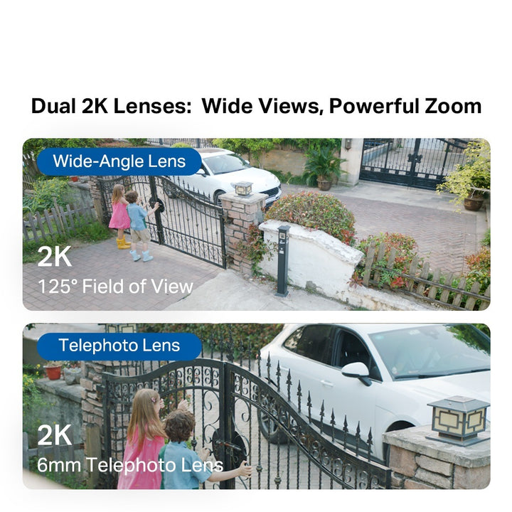 - Wide-angle & Telephoto Lens - With 125° FOV wide-angle lens and 6mm telephoto lens, it ensures all-around awareness and down-to-the-detail protection of your home.