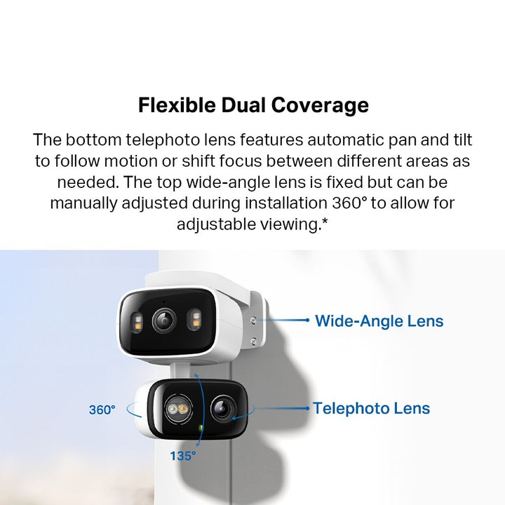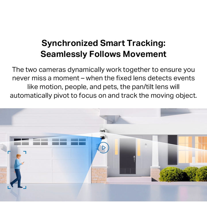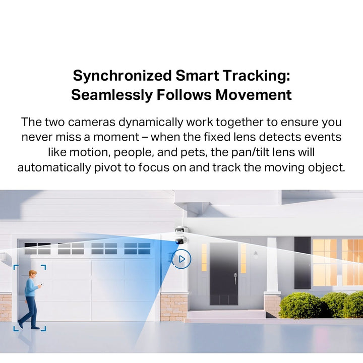 - Synchronized Smart Tracking - When the fixed lens detects events, the pan/tilt lens will automatically pivot to focus on and track the moving object.