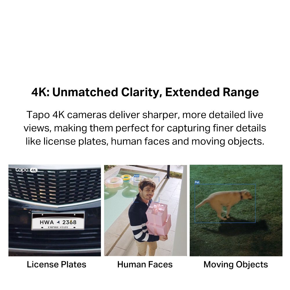 - Free Person/Pet/Vehicle Detection: Using Al technology, the camera provides alerts as it identifies people, pets, and vehicles, reducing false alerts and unnecessary notifications.