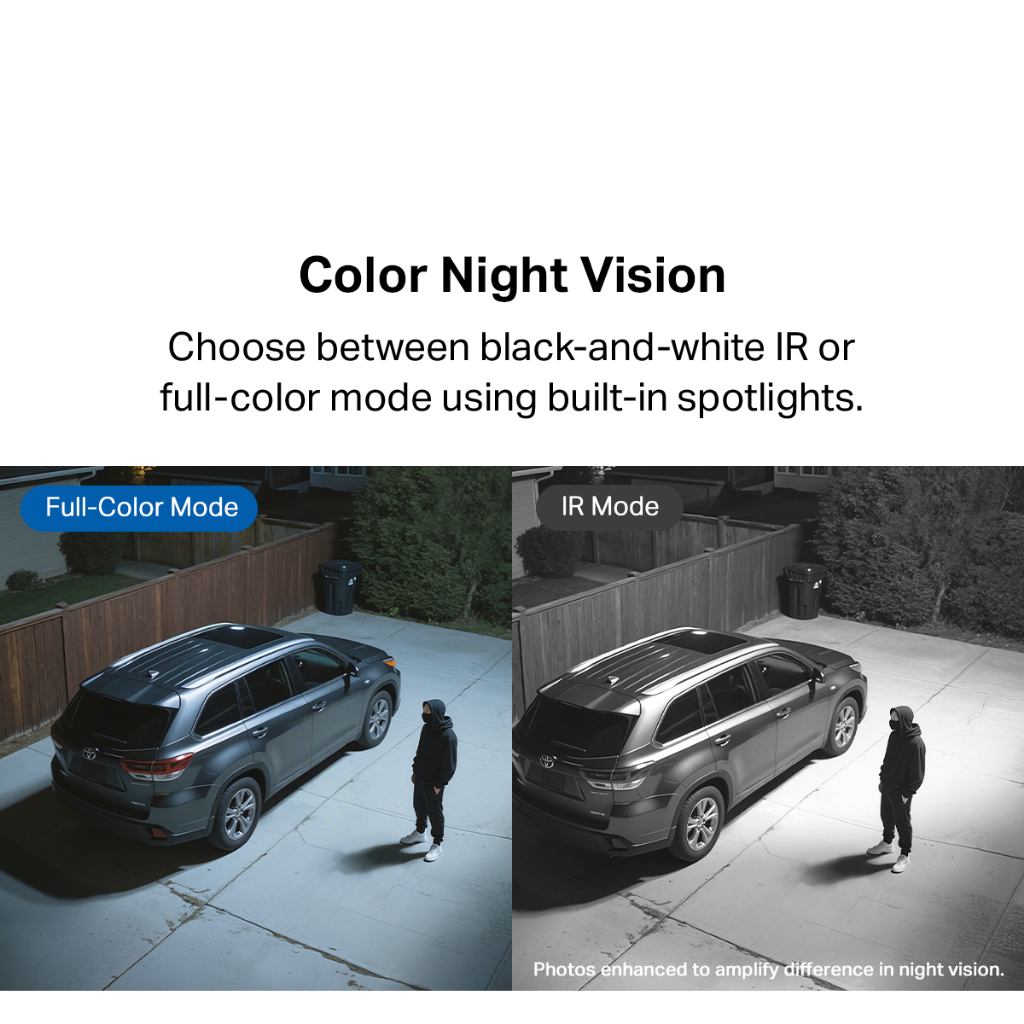 - Vivid Colors, Even at Night: Instead of black-and-white images, the camera offers full-color images at night with built-in spotlights, ensuring details in low-light conditions.